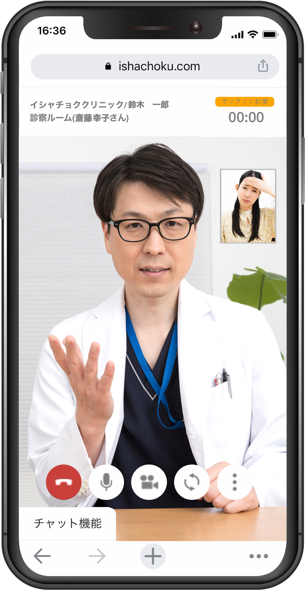 イシャチョク®仮想待合室型オンライン診療は、全国の今すぐ対応可能な医師がオンライン診療を行うサービスのため、特定の医師に診察してもらうことはできません。